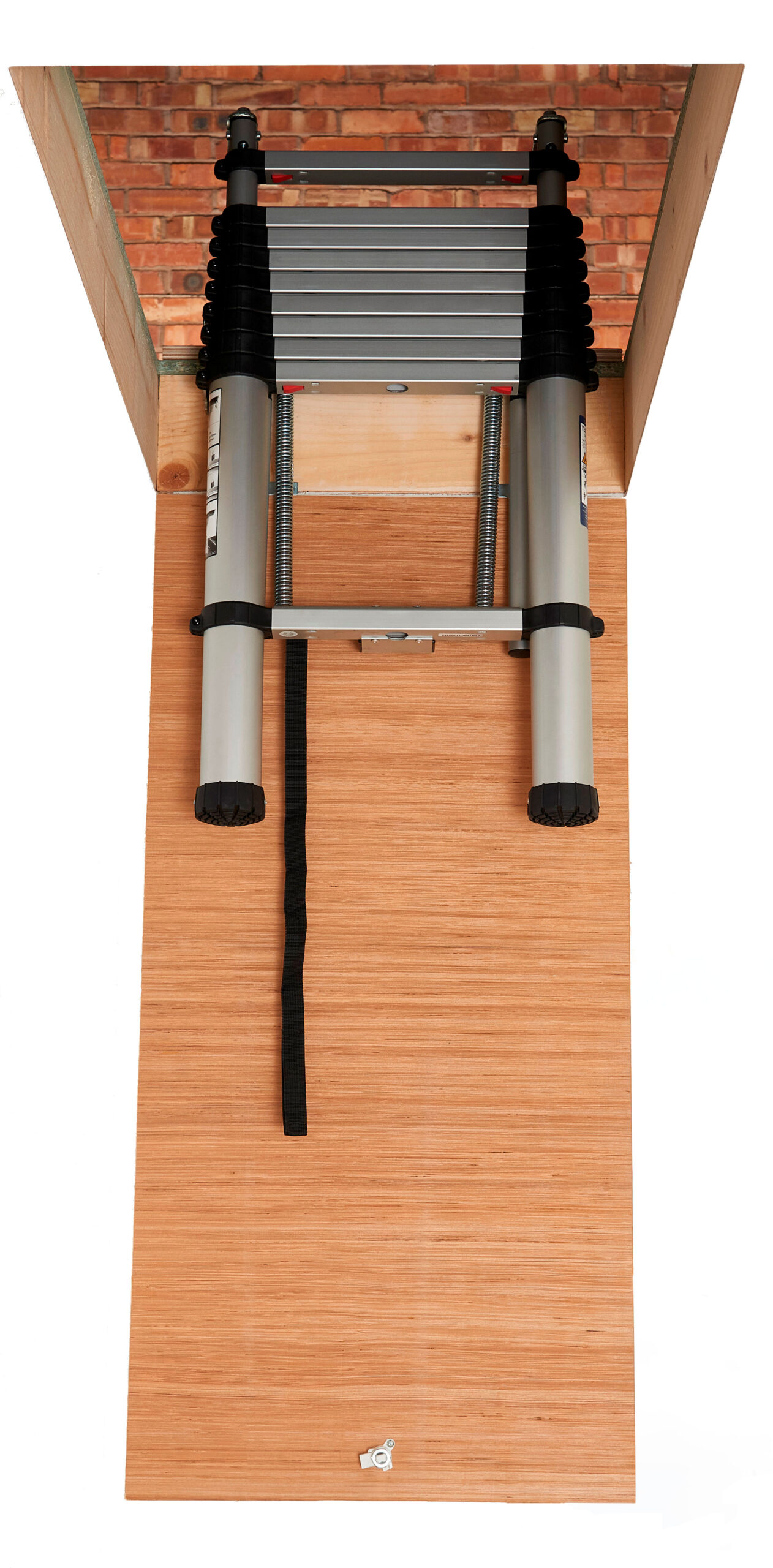 The Werner Telescopic Loft Ladders are a compact loft access solution, ideal for small loft hatches with minimal storage space in the loft. The telescopic design enables users to adjust the ladder up to three different height positions. The enhanced automatic locking safety feature locks the ladder in place securely for safe climbing. This compact telescopic loft ladder has all the components needed for easy installation, including a stowing pole and comprehensive instructions.