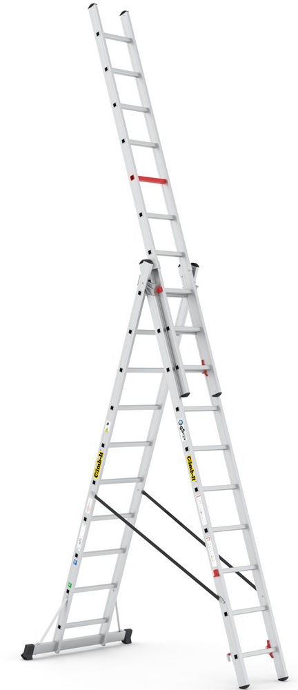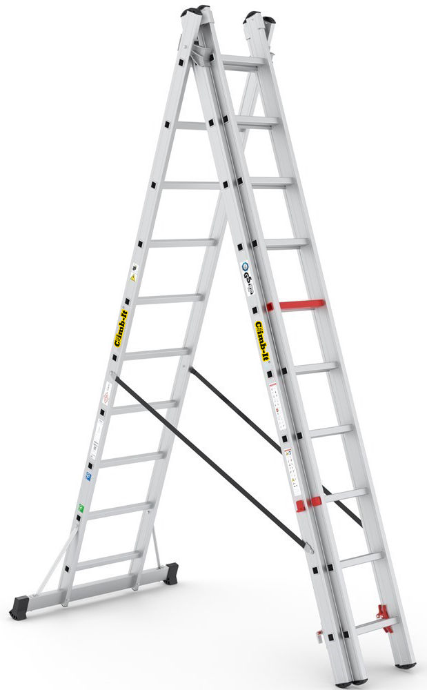 The CLIMB‑IT® Combi Stepladder is a professional 3 in 1 combi ladder that adapts to your job—whether you need a standard stepladder, an extended stepladder, or a full extension ladder. This multi-purpose ladder delivers the flexibility you need in one high-performance solution. Manufactured from lightweight aluminium and tested to the EN 131 Professional standard, it’s built for reliability and strength. Safety is central to the design, with features like the Red Maximum Safety Step, rear stabiliser, and anti-skid feet for added grip and balance. This compact aluminium combi ladder is ideal for tradespeople, maintenance teams, and DIYers who need a combination step ladder for both indoor and outdoor tasks. Whether you’re decorating, repairing, or working at height, it provides safe, stable access you can rely on.Features: