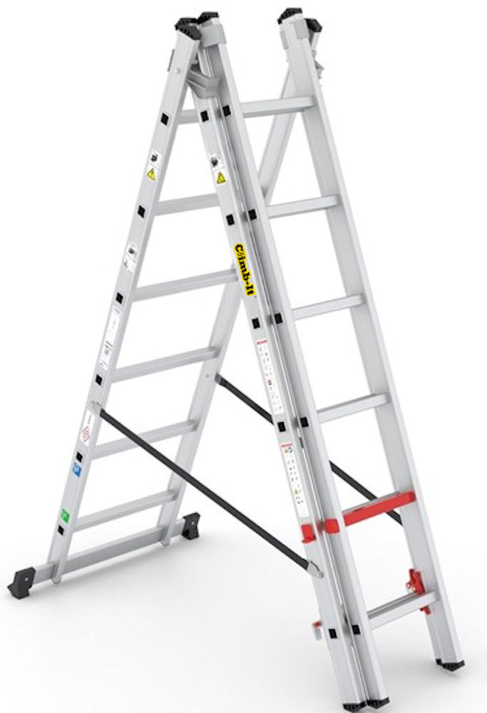 The CLIMB‑IT® Combi Stepladder is a professional 3 in 1 combi ladder that adapts to your job—whether you need a standard stepladder, an extended stepladder, or a full extension ladder. This multi-purpose ladder delivers the flexibility you need in one high-performance solution. Manufactured from lightweight aluminium and tested to the EN 131 Professional standard, it’s built for reliability and strength. Safety is central to the design, with features like the Red Maximum Safety Step, rear stabiliser, and anti-skid feet for added grip and balance. This compact aluminium combi ladder is ideal for tradespeople, maintenance teams, and DIYers who need a combination step ladder for both indoor and outdoor tasks. Whether you’re decorating, repairing, or working at height, it provides safe, stable access you can rely on.Features: