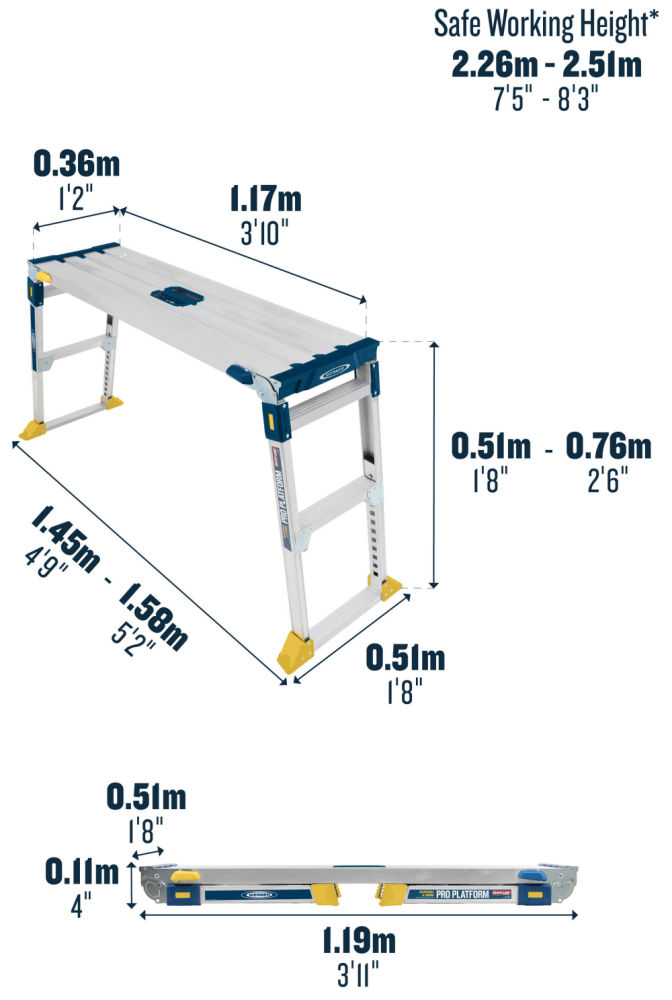 • ***Safe Working Height based on 1.75m (5ft 9in) as the average reach height of a person. ****Load includes user, tools, materials, etc. *****Guarantee against manufacture defects in workmanship or materials.