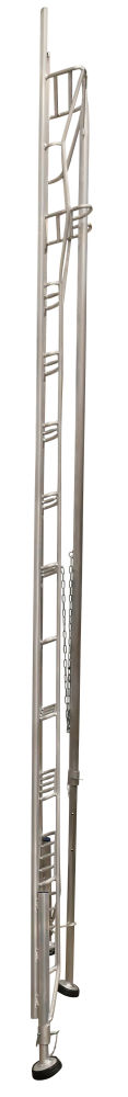 - Rear leg with safety chain and carabiner provides restraint to set and maintain ladder spread
