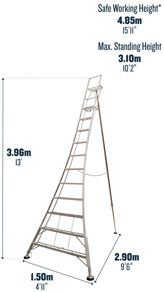 With a wide base for added stability, deep slip-resistant double-rung treads, a 230mm deep standing step and a high handrail for extra support, the compact tripod design provides safe access in challenging environments – ideal for pruning, trimming, fruit picking, cleaning or light maintenance tasks.