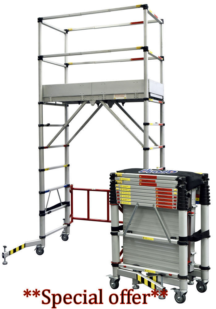 Werner Telescopic Mobile Tower The Werner Telescopic Tower is a one-person operated tower, designed to provide safe access for professionals needing to work at height comfortably and safely. This tower can be fully set up in just three minutes for a quick and easy assembly. The telescopic design enables users to adjust the tower to five different platform heights from 1m to 2m. This professional telescopic tower folds compactly for easy transportation in a small van or estate car and comprises of only three parts for easy storage.Features