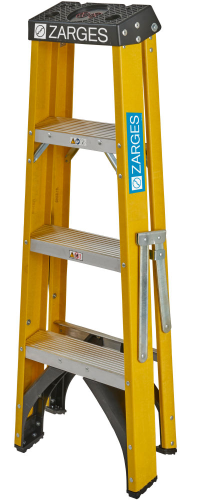 Zarges GRP Swingback Stepladders EN131 Professional Constructed from strong and resilient fibreglass, the ZARGES fibreglass Swingback Stepladder is long-lasting and capable of withstanding heavy use. Ideal for use near electrical hazards.