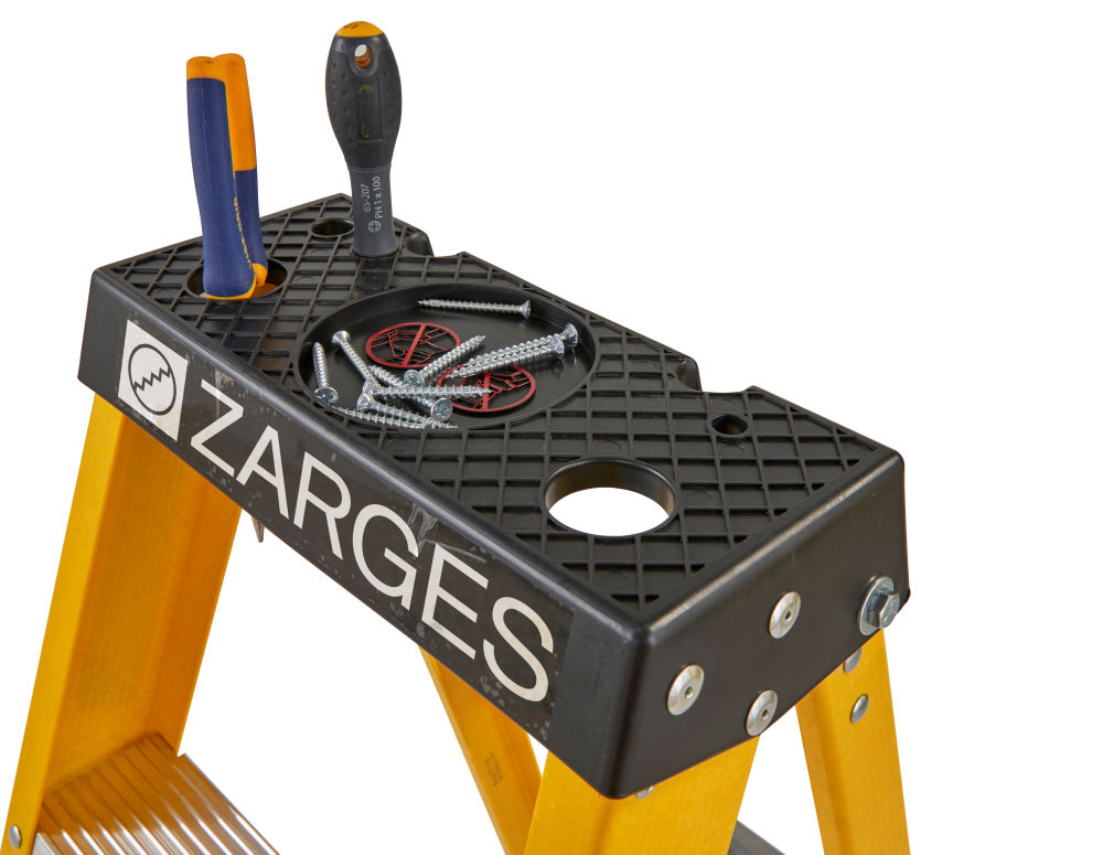 Zarges GRP Swingback Stepladders EN131 Professional Constructed from strong and resilient fibreglass, the ZARGES fibreglass Swingback Stepladder is long-lasting and capable of withstanding heavy use. Ideal for use near electrical hazards.