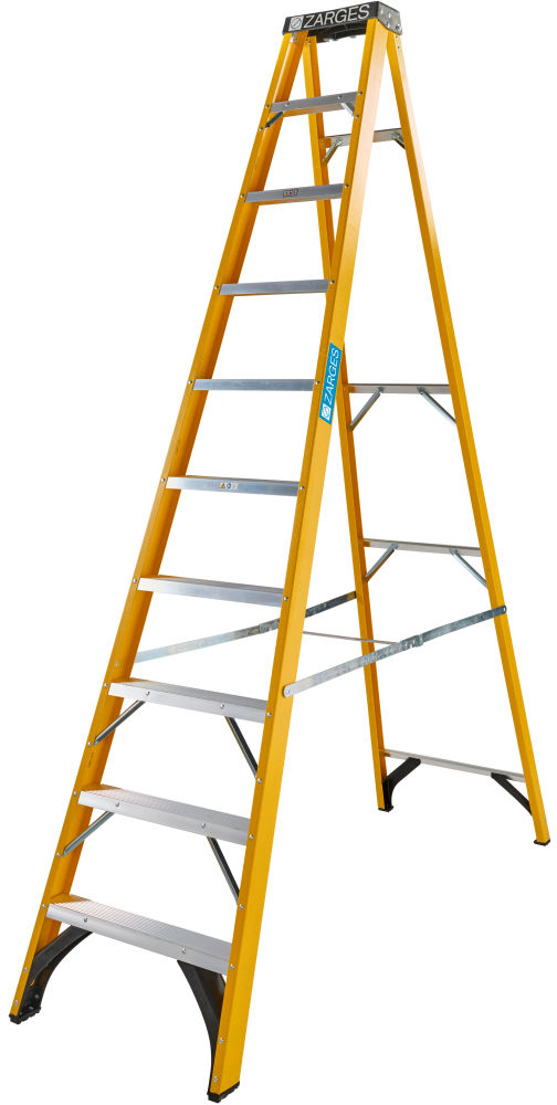 Zarges GRP Swingback Stepladders EN131 Professional Constructed from strong and resilient fibreglass, the ZARGES fibreglass Swingback Stepladder is long-lasting and capable of withstanding heavy use. Ideal for use near electrical hazards.